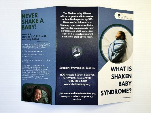 Our brochure on Shaken Baby Syndrome (SBS) provides essential information about this preventable form of child abuse. It explains how SBS occurs when an infant is violently shaken, leading to severe brain injury and potentially lifelong disabilities. This brochure outline the risks, offer prevention tips such as managing stress, seeking support, and knowing when to take a break, and emphasizes the importance of never shaking a baby.